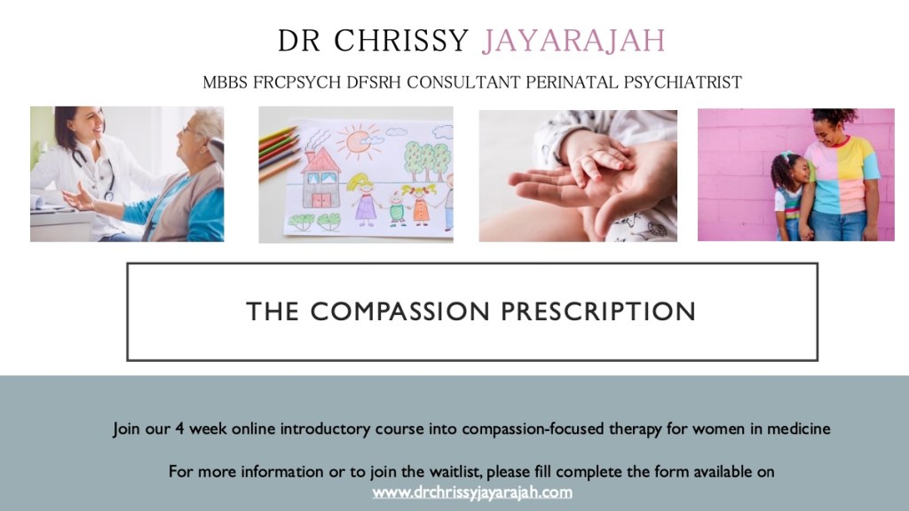I am currently opening up a 4 week online introductory course tailored for women working in medicine to learn more about compassion-focused therapy.